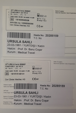 Alle Unterlagen inkl. IOL-Master-Messung waren in Istanbul durch Prof. Dr. Banu Coşar auf die Möglichkeiten und meine Wünsche beurteilt worden.