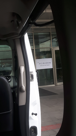 Um 11 Uhr sollte ich gemäss SwissLasik-Pass im Hotel abgeholt werden für die gründliche Untersuchung meiner Augen im Acibadem Maslak Hospital. Ich sass gerade beim Frühstück, als man mir um 8.30 Uhr mitteilte, dass mein Fahrer da sei. Nach kurzen Abklärungen zeigte mir der Fahrer eine Liste, auf der mein Name tatsächlich auf 09.00 Uhr eingetragen war. So liess ich das angefangene Frühstück stehen, raste ins Hotelzimmer, putze mir die Zähne, packte alles Notwendige (ID-Karte, SwissLasik-Pass) zusammen und wurde zur Klinik gefahren. Alle Transportwagen (Transportbusse oder PW) waren immer mit ACIBADEM angeschrieben. Das beruhigte mich als Alleinreisende und gab mir auch Vertrauen in die Fahrer. Diese waren meistens schon 15 bis 30 Minuten vor dem Abholtermin bei mir im Hotel.